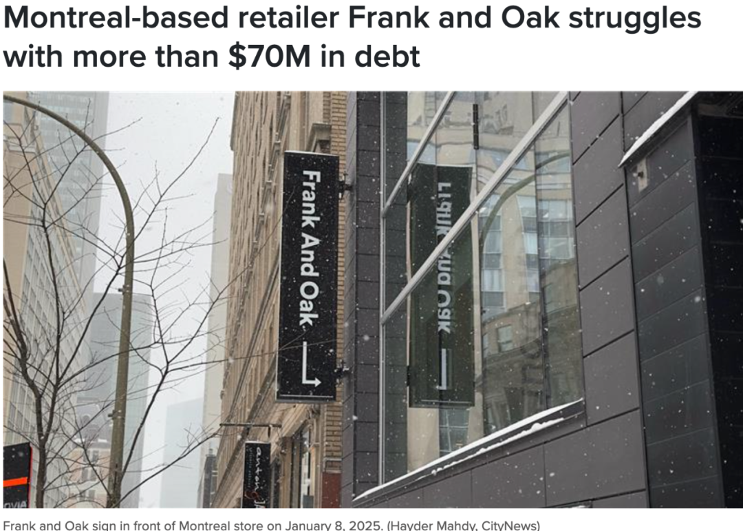 总位于蒙特利尔的零售商Frank and Oak目前负债超过7000万美元,已申请债权人保护。 根据法庭文件,债权人包括Desjardins、Revenu Quebec和Shopify。 这家总部设在蒙特利尔的公司在一份新闻稿中表示:“我们的主要目标是保留业务、保障员工就业,并探索可能的解决方案,比如吸引投资者或为品牌寻找买家。”