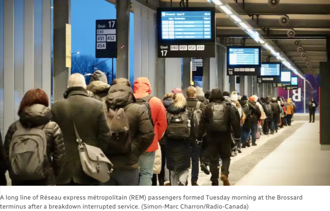 周一,由于蒙特利尔大雪,轻轨也停运了几个小时,尤其是在下午高峰期间。Bonaventure车站周围人们排起了长队等候接驳班车。