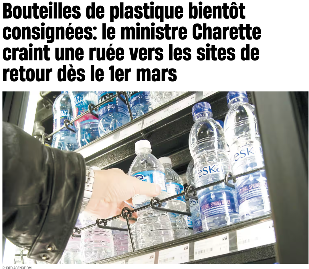 从今年3月起,魁北克省将增加可回收的容器种类,包括100毫升至2升装的水、果汁和牛奶的塑料瓶。这意味着,每年将有近15亿个新的容器被纳入空瓶回收系统,除了啤酒瓶、软饮料和铝罐等已有的可回收产品。