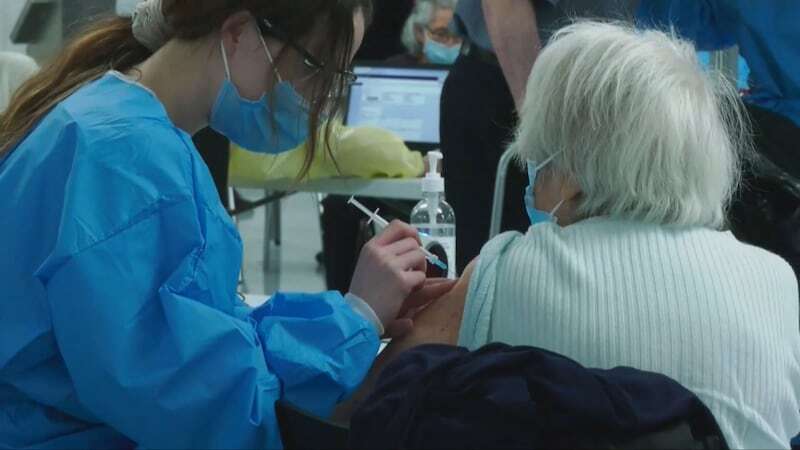 疫苗剂量 魁北克的一名医护人员为患者注射COVID-19疫苗。