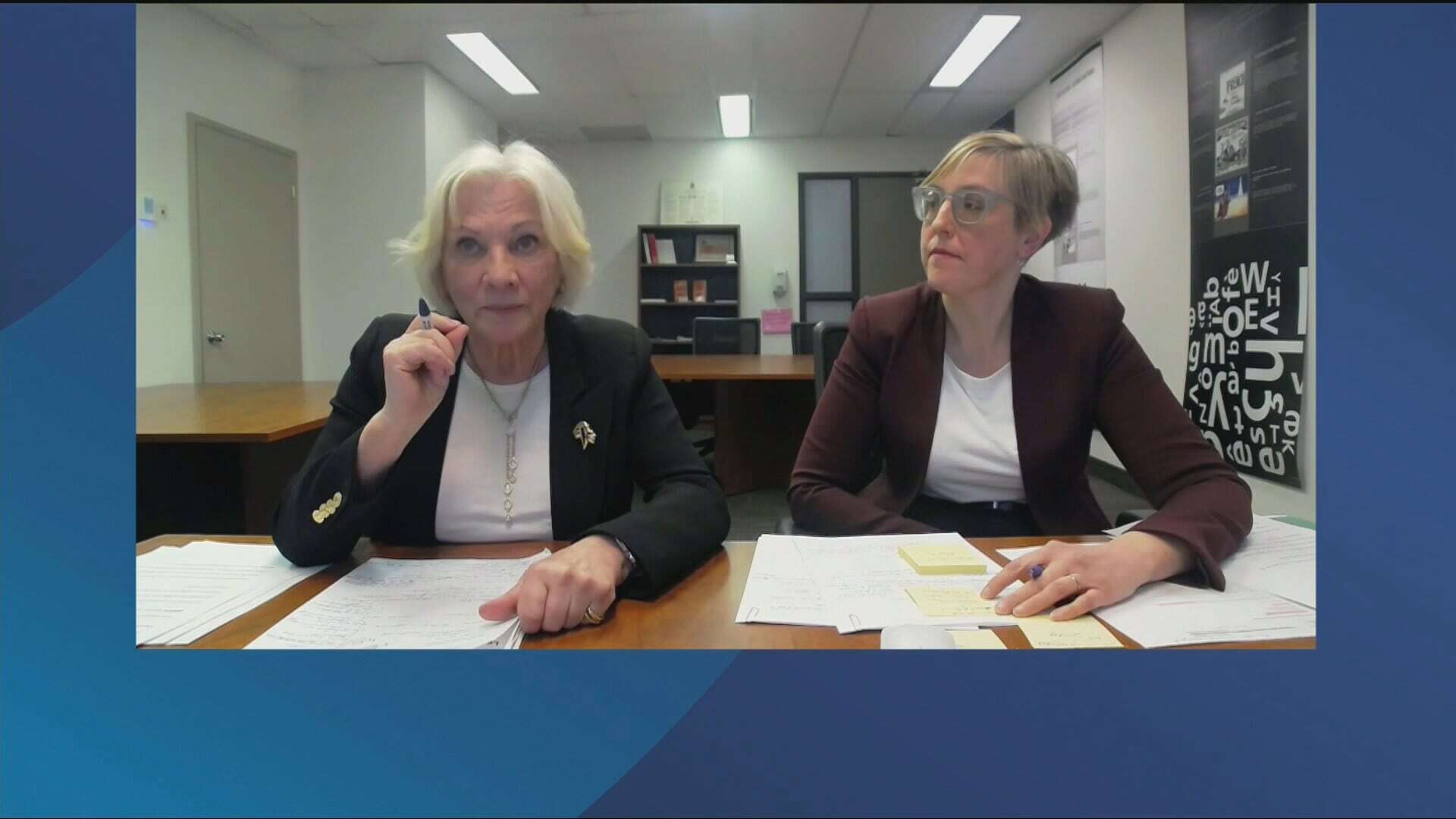 QCGN总干事西尔维亚·马丁-拉福尔左侧,律师玛丽昂·桑迪兰德斯于2025年2月25日星期二在市民关系委员会上发言。 (国家议会)