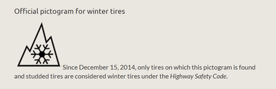 所有冬季轮胎必须标有此标志。据魁北克交通安全局(SAAQ)指出,符合规定的冬胎会具有特定的标志,以确保符合安全标准。