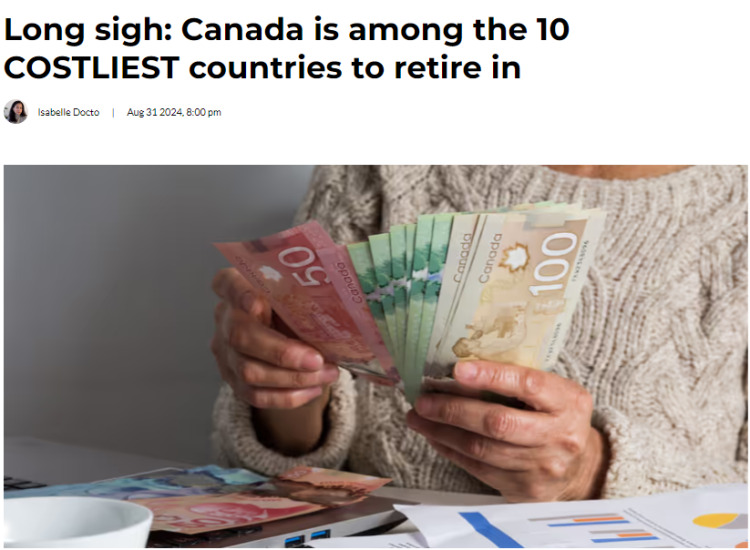 根据一份报告,全球退休成本排名前 20 的国家中,加拿大不幸位列其中。