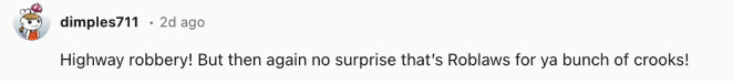 另一位网友则表示:“这就是抢劫!不过话说回来,事情在Roblaws身上并不稀奇。”