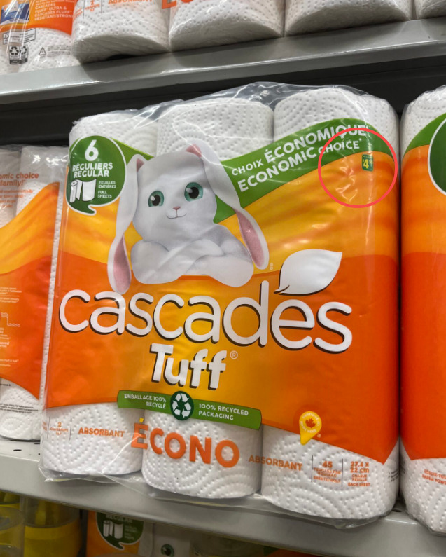 在Reddit上,一位网友@SurreptitiousSquash发布了一张Real Canadian Superstore销售的Cascades Tuff厨房纸的六卷装的照片,标价为9.99加元。